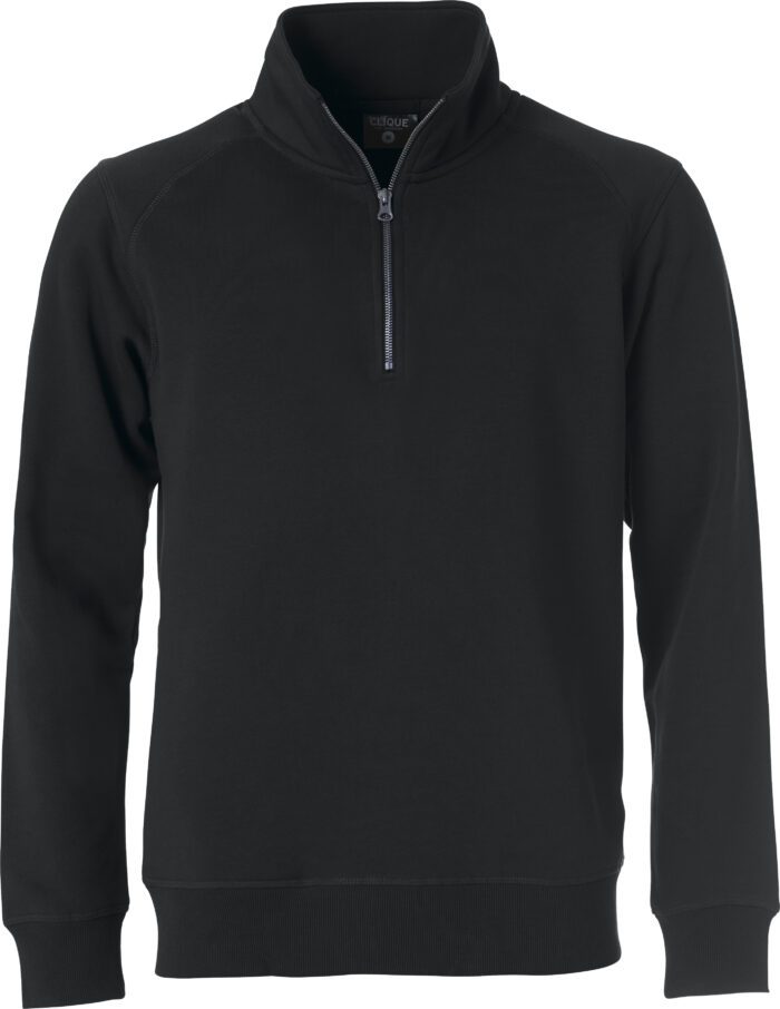 Sweatshirt 1/2 zip – Poche cachée zippée avec smartphone system – lavage 60° – coutures Flatlock ton sur ton – bords côtes 2×2 poignets + taille